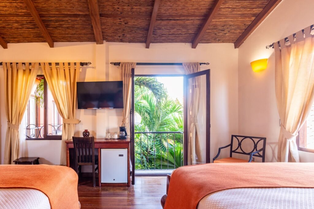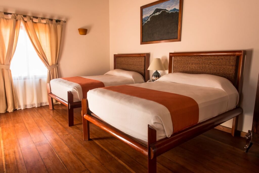 Lodging at Hotel Estrada corresponds to quality, luxury and comfort. Each room has been created using the highest standards to make your experience unique. Perfect for families, the spacious Double Queen room is equipped with two queen size beds and located on the second floor with a window view of the central patio.